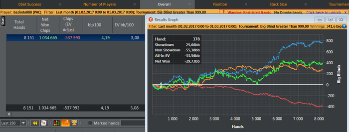 Месяц начался с марафона на который я возлагал большие надежды. Марафон с треском провалился. Впервые за свою покерную карьеру столкнулся с 16-ти дневными, беспрерывными *анальными ласками* к которым был не готов ни морально,Ни физически. Залил порядка 1500 баксов +- . Брррр,жуть. Надеюсь этот залив в прошлом и в новом месяце меня ждут кисельные реки и сгущенные берега. (или как там?э)