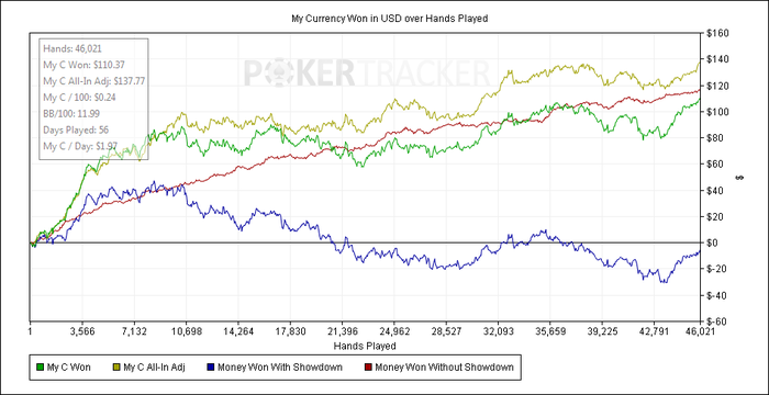 BB: $22.05 (VPIP: 36.96, PFR: 26.09, 3Bet Preflop: 7.89, Hands: 92)