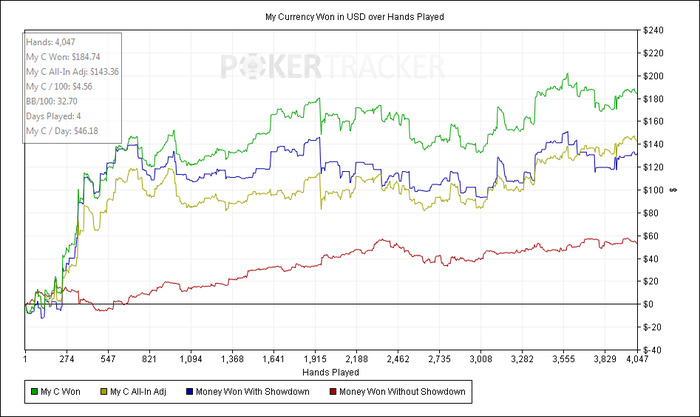 SB: $30.58 (VPIP: 28.08, PFR: 20.69, 3Bet Preflop: 6.74, Hands: 203)