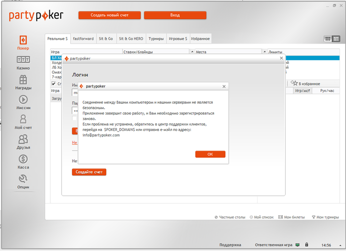 4. Можете ли вы залогиниться в клиент PartyPoker?