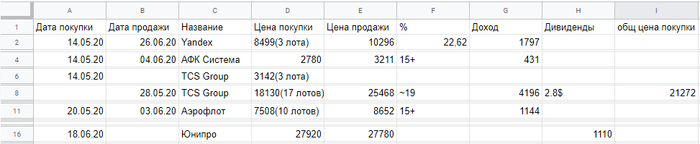 2. Грубая ошибка в трейдинге и в покере - рубить прибыль. Тупо зарубил 3 классные позиции. Ладно Яндекс не жалко, его по акции от брокера при старте брал.