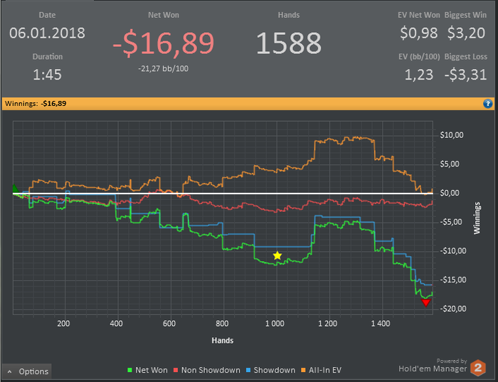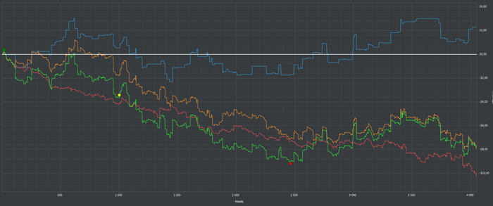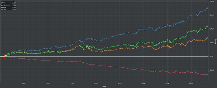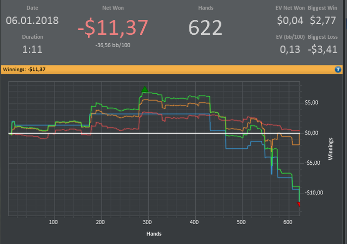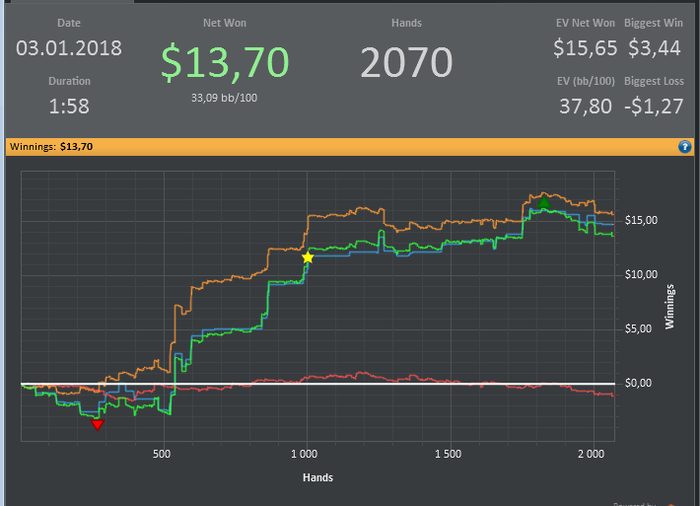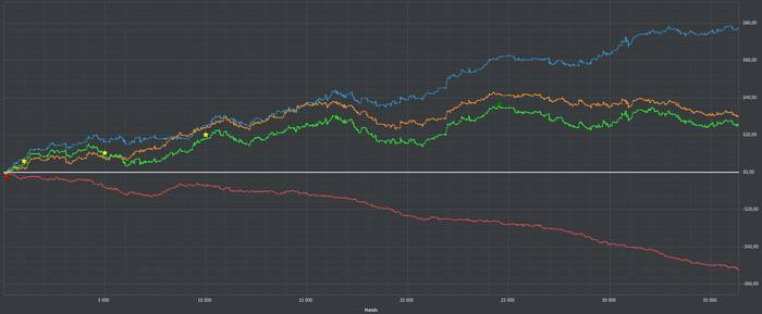 1.Отыграл 70 004 руки в кеш и выиграл 43,75 $ винрейт составил 3,13BB.