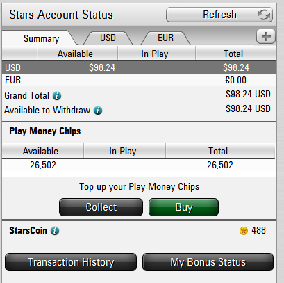 Следующая цель NL5 выделю на это 20$ буду играть со средним стеком ,а там дальше как пойдет.Хочу выиграть 100$ на NL5.Буду играть 6 столов пока не присмотрюсь к игре .Вот в общем и все )
