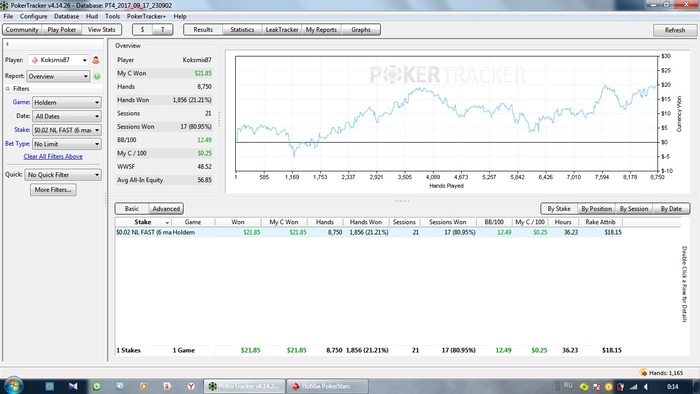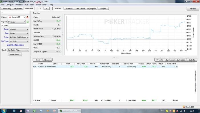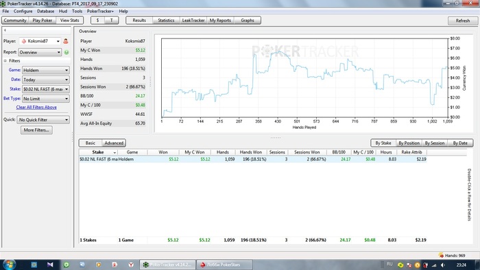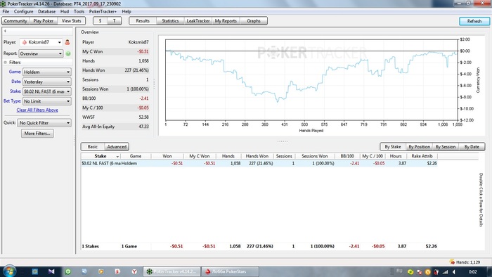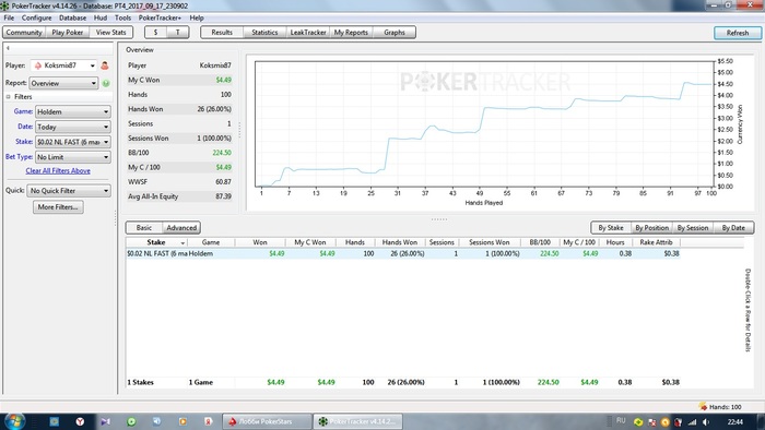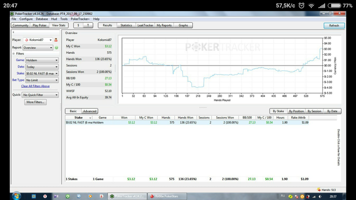 Еще одна вечерняя сессия подошла к концу. Сегодня меньше 500 рук откатал.