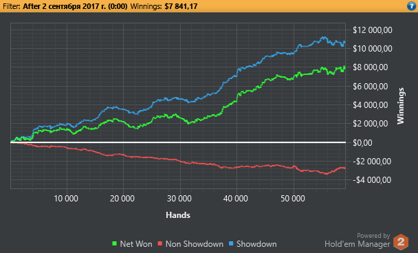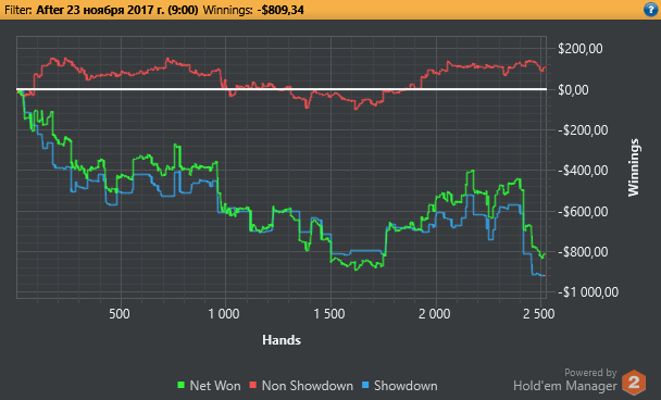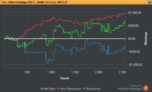 Сессия очень странная с хорошими и плохими моментами, тильтую сильно от такой игры и срываюсь в раздачах. Но я продолжу так же играть, только более ответственно с каждым днем, не хочу тупо бамхантить, пока есть возможность чему-то научиться. Да и пока на сотках не покажется винрейт на более менее нормальной дистанции 6-8бб, а лимитах выше можно забыть, ну я и не вспоминал на самом то деле.