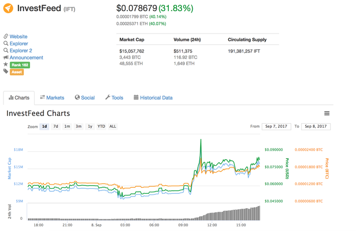 Сегодня он начал пампить IFT, стоила 6 центов. Любопытно, куда дойдет, уже +30%