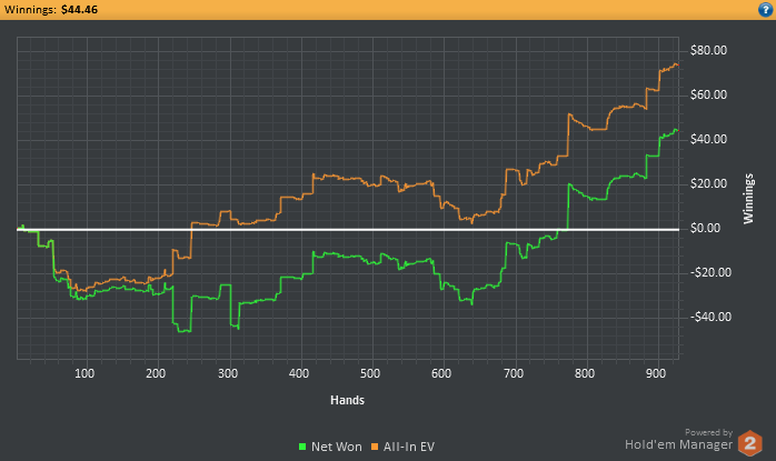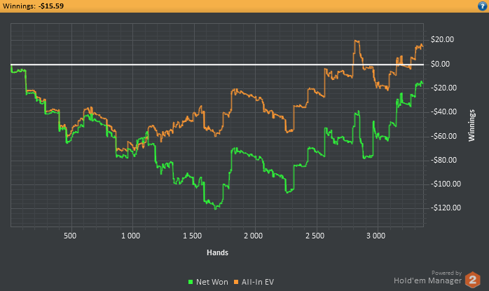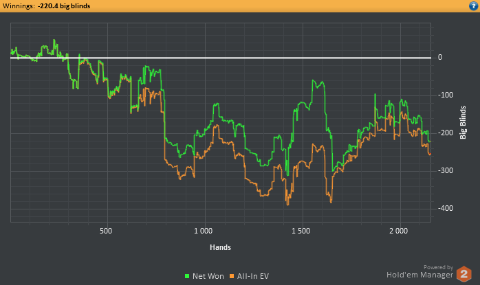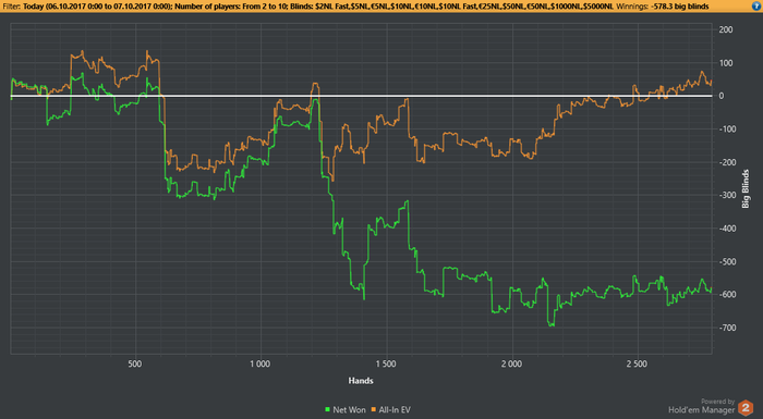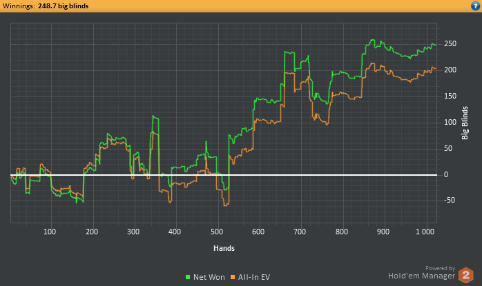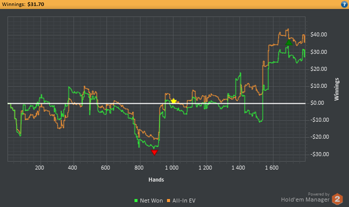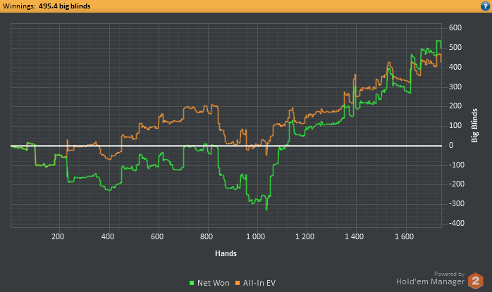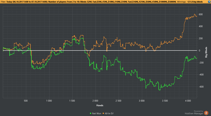 Во время 2й сессии заметил, что тот же игрок играет ХА с регом на 2х столах, и когда я подсел, он попросил чтобы я вышел со стола, получив отказ он ушел в АФК и мы остались с регом в ХА. За другим столом такая же картина. Поняв что это был сладкий фиш я не стал уходить в АФК даже оставишь с регом, рег сам решил уйти со стола, и этот фиш начал активно играть со мной. В начале ему сильно везло, но все таки на нем и сделал пару стэков.