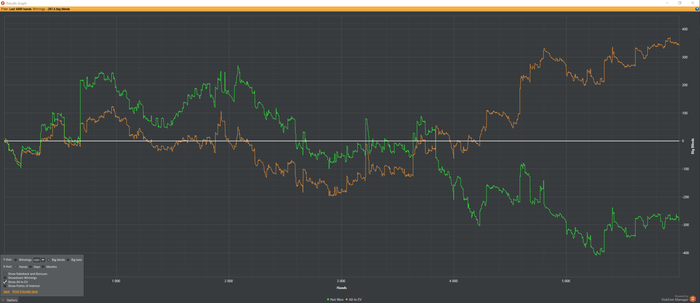 Ну что друзья, очень давно не писал) Просто мало катал, отдыхал, если попойки с друзьями и родственниками можно назвать отдыхом) В оффлайне тотальная невезуха, когда выигрываешь 1 выставление из 5 от 5-10к(рублей) против случайной руки. В онлайне поднял лимиты на винере, катаю все до 30евро, на остальных румах всё до 12$( в выходные грузил до 30$). Профит за 400 турниров примерно 1000$, хотя шаркскоп показывает меньше. Откатал, а точнее залил в сатах на Сочи около 200$, складывает впечатление, что сам проебал возможность поехать в Сочи из-за своего бездействия длинною 2 месяца(не катал толком). В конце концов надо правильно расставить приоритеты и достигать своих целей. Откатал от себя 50к рук и выкладываю графики. Уверен, что найду в себе силы, плотно сяду катать и зарабатывать деньги, очень хочется в Сочи.