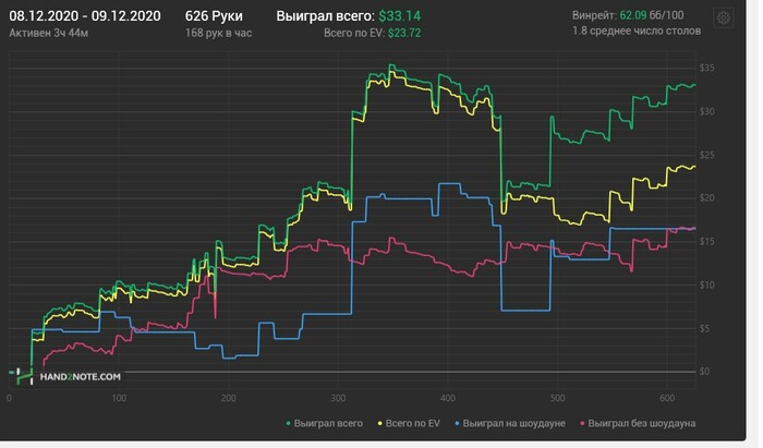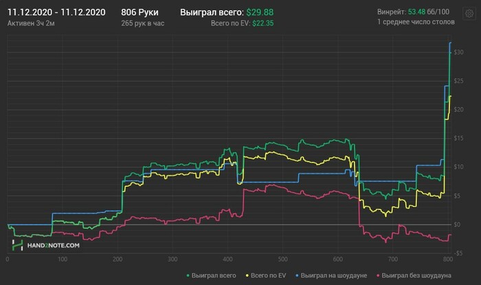 Вчера ночью играл мало. Прилег в начало второго. Думал подремлю 20 минут и встану. Встал в половине восьмого утра. Вырубило. Потом в течение дня вырубало еще несколько раз. Сижу на таблетках. По всем признакам заболел. Сегодня очередной сюрприз от восьмерок. Все мои метки слетели. Реги на 90% стали зелеными как фиши. Я в шоке. Получилось, что поляна не размечена. Как играть не понятно. И как исправлять тоже. Вообще смотрю софт на восьмерках очень косячный. На стразах за несколько лет столько проблем сколько на восьмерках за этот месяц не было. Софт писец. От горя начал катать зум десятку. В конце удвоился резко. Больше играть не буду. Иначе будет головокружение от успехов. Сейчас начнутся левые блефы и все потеряю. График за сегодня выглядит так.
