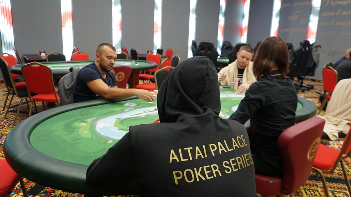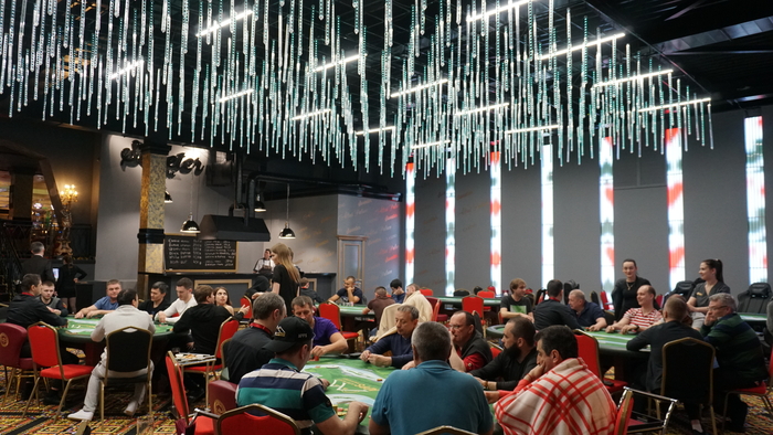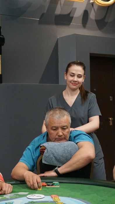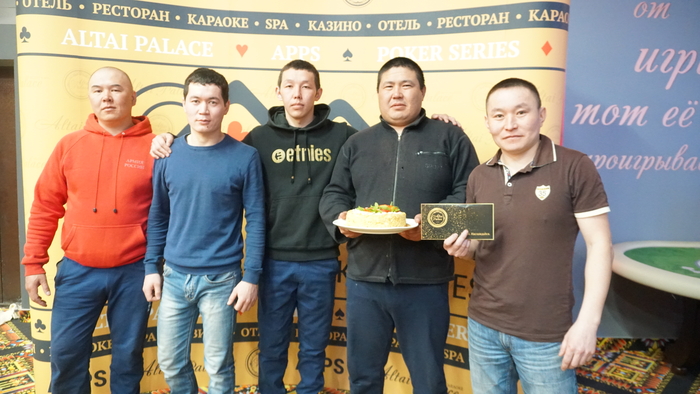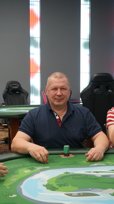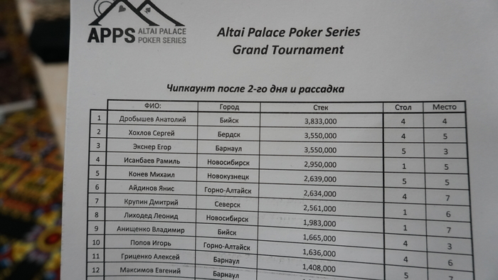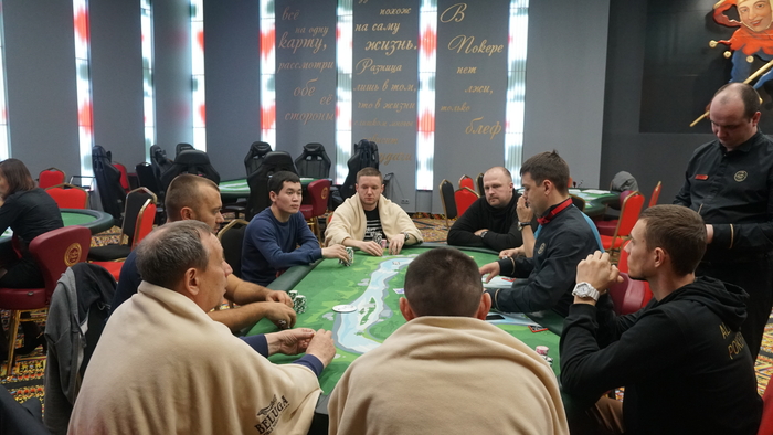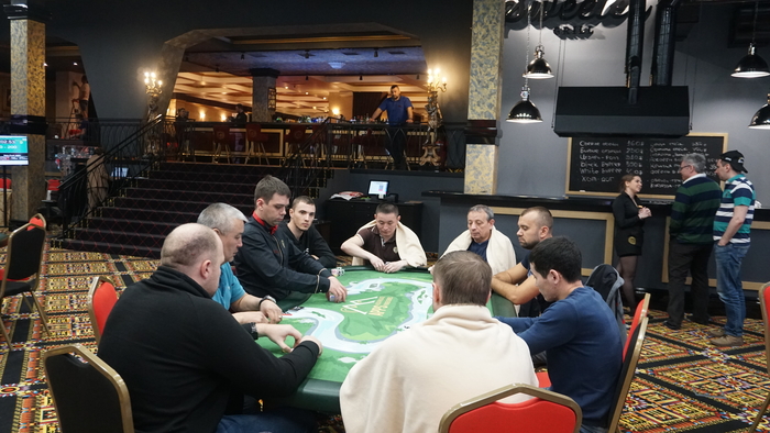 В сателлите повышение уровней: 150/300, баттон анте 300, последний уровень поздней регистрации. 15 входов, в игре 7 человек. Совсем скоро фотоотчет турнира по мини футболу.