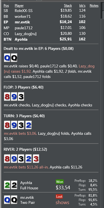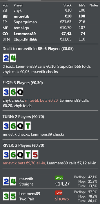 Словил на этой неделе антимотивашку тотальную, сесть катать анриал было. В целом текущий период самый тяжелый, когда есть БР, есть деньги на жизнь, нет долгов, отличный повод уйти из покера на пару месяцев пока не кончится БР. Если я сейчас продолжу катать - это будет колоссальный прорыв в моей игре, но главное слово тут "ЕСЛИ".