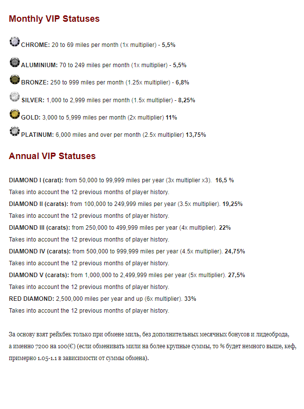 1. Наши банки к сожалению не катят , так же и Украинские теперь тоже не подходят . Скрилл нужен тебе , что бы можно было закэшаутить и депнуть . И он нужен по-любому , по другому не пройдешь верификацию полностью 2. Хитрые ходы есть ))) но это уже в личку ) 3. https://forum.gipsyteam.ru/index.php?act=attach&type=post&id=665620 тут табличка сколько % рэйкбэка ты получишь . Допустим у тебя статус Diamand III и 22% рейкбэк и ты играешь 10ки . Чтобы сыграть одну 10ку ты платишь рэйк рума 7% , т.е. 0,7 евро из них 0,7*0,22 = 0,154 евро ты получаешь себе с каждого турнира в виде рэйкбэка.Плюс для 5ок и 10ок есть лидерборд и в зависимости от места от 1го до 50го ты получаешь от 100 до 5 евро и плюс для каждого статуса есть свой бонус это ещё 100-300 евро в зависимости от статуса