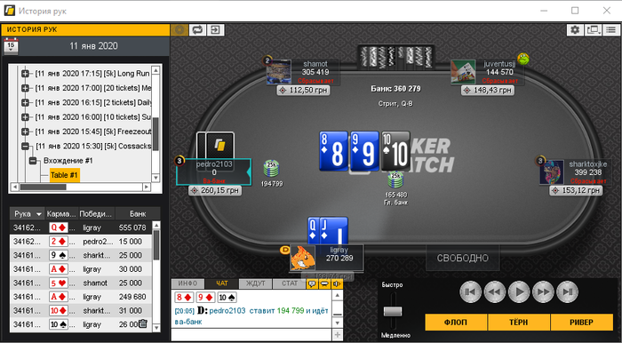 Сегодня же, вернее уже вчера, 9.01, было уже совсем другое настроение, слияние легкости, уверенности и полной сосредоточенности, а так же более крепкого БР-а придали красок к игре и это было действительно в удовольствие, благодаря таким эмоциям и ощущениям я снова и снова возвращаюсь в покер, веря, что еще не сказал последнее слово. В итоге в середине сессии я вошел в поток, возможно даже кураж, ведь голова была светла и сдавали как надо, а игру я читал еще до того, как соперник начнет чет там думать (навернул конечно, но все же) В общем я пхнул во всех топ турнирах которые только мог себе позволить и только и делал, что отгонял мысли о финалках и топ местах. Но не смотря на практически лучшую мою игру в самые ответственные моменты удача отвернулась, возможно от того, что и я подгорел на ментальном уровне, случились сплошные "недоезды"...