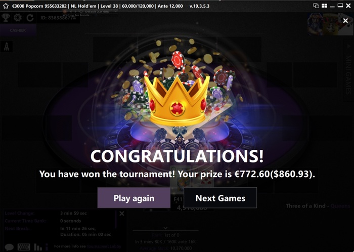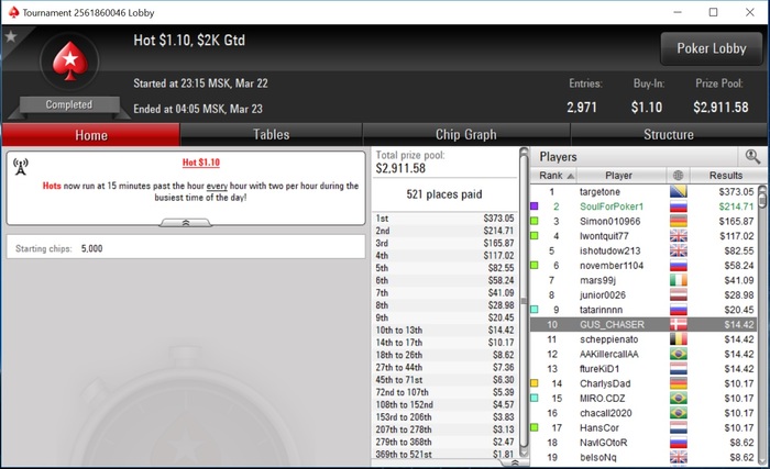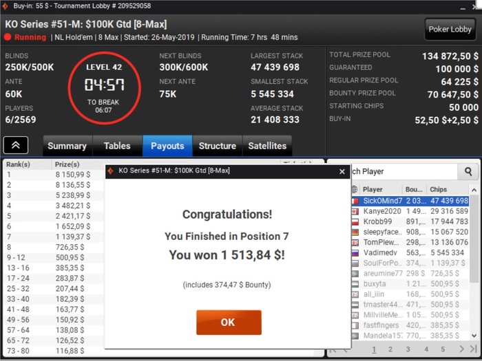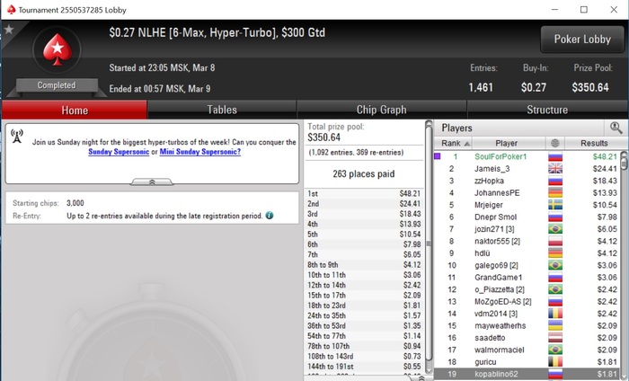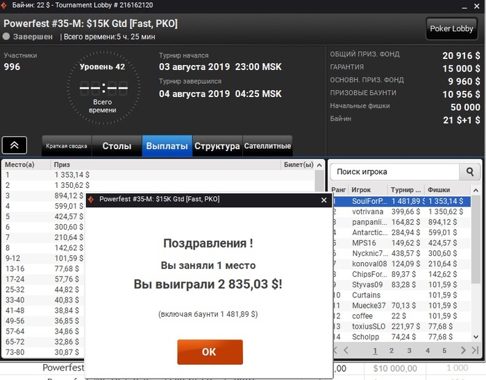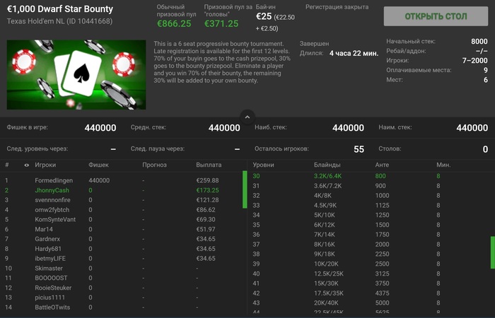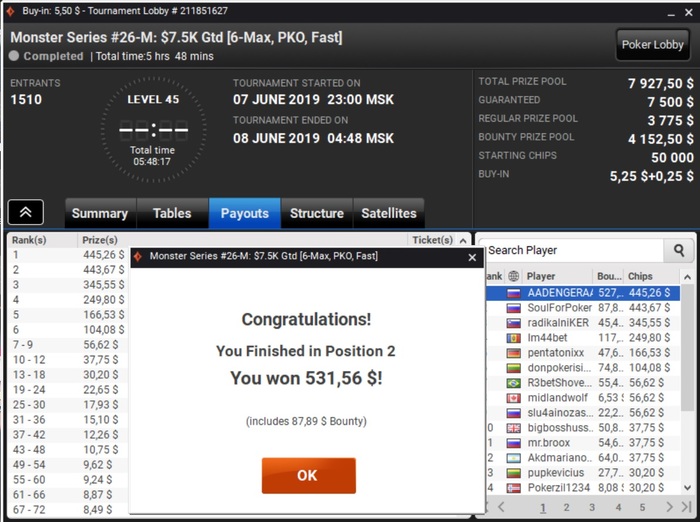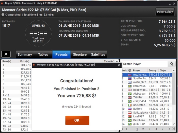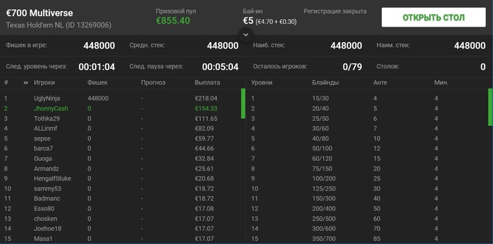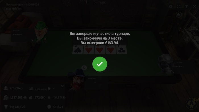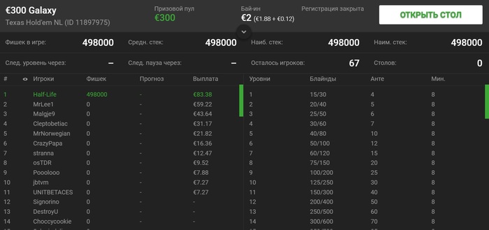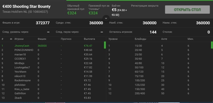 Топ 2 (согласились поделить, по ICM по стеку мне полагалось 307 $, но парень жёстко тупил, пришлось отказаться от делёжки)