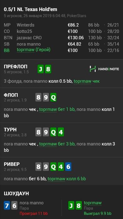 Надо как-то продолжать катать, а то уже есть желание оставить покер на недельку. Но нет, такому я уже давно не поддавался и в этот раз не стану. Просто ради раскачки выложу наугад раздачу, даже больше для того чтобы во время игры отмечать, а главное замечать более интересные. Потому-что и даже удивления нету после некоторых сыгранных рук. Хотя бывает сыграешь какую-нибудь интересную линию, которую не сыграл бы никогда не включив мозг но отметить забудешь(поленишься) или дефолтом кажется.