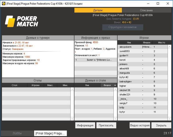 В праздничные дни кто-то отдыхал, а кто-то зарабатывал путевки в Главное событие серии PFC в Праге. Поздравляем новых участников турнира — игроков с никами yellowhesus и mattiefranklin, которые прошли отбор на PokerMatch