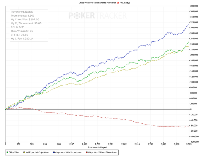 Результаты на 3.500 спинов Подгрузил стату VPIP в 3 мах и увидел большой просак по СБ и ББ, нормальные VPIP только на баттоне Сейчас буду играть 1 стол и зубрить чарты по СБ и ББ так что бы если меня ночью разбудили я смог перечертить их с закрытыми глазами Перестал бздеть ставить конбеты в постфлопе и сразу пошло добро, красная по тихонько пампится