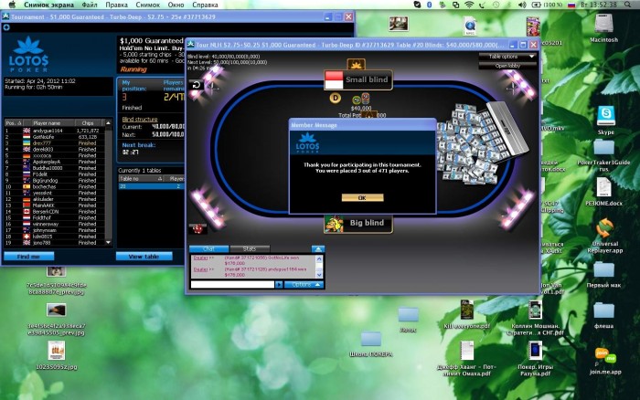 Уровень до занятий с Сергеем был минимальный. Я был очень хорошим фишом, защищал ББ на 63о и играл руку, т.е. пытался попасть во флоп. Думаю уровень понятен. Играл турниры за 1, 2,2 и 2,75$.