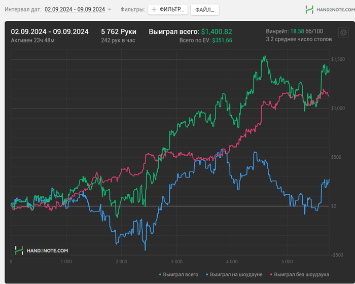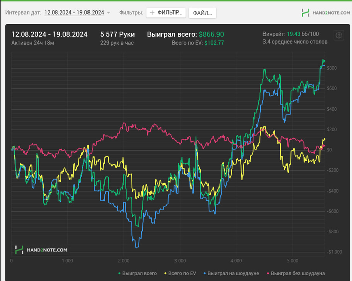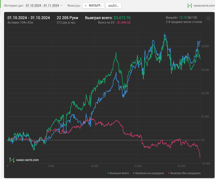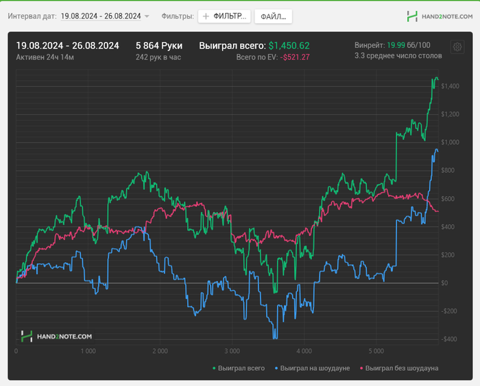 PushkaBombaPoker, сябар я не понял как ты сделал такие расчёты что я 16 рук в день катаюна графиках же есть даты, дистанция, ср. кол-во столов