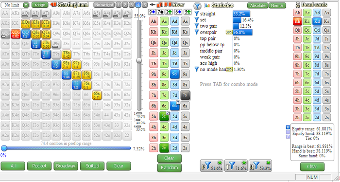 (3 players)MP bets $4.62, Hero calls $4.62,