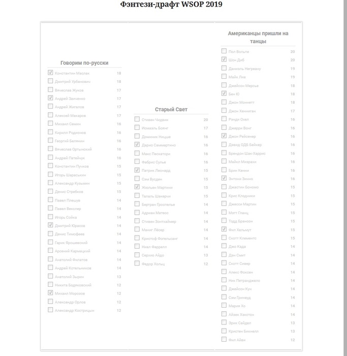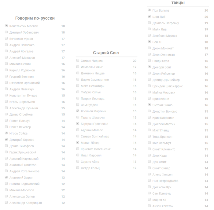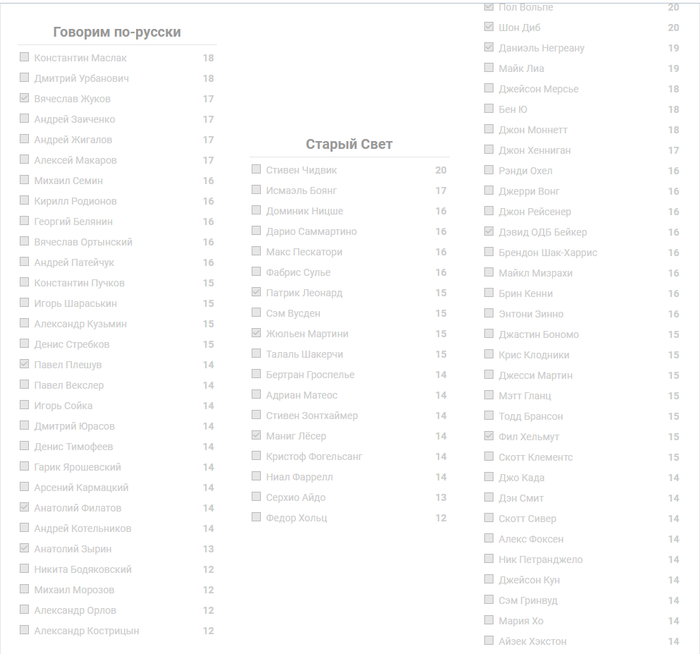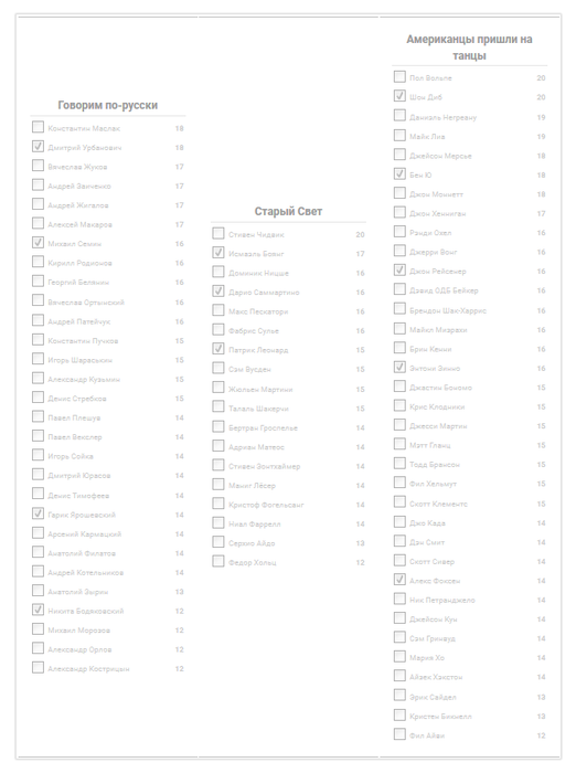 AlexRuchkin @ 4.6.2019 И главное 12 человек, напишу на всякий случай, а то сам такую ошибку допустил выбирал по очкам, а за кол-вом участников не следил.