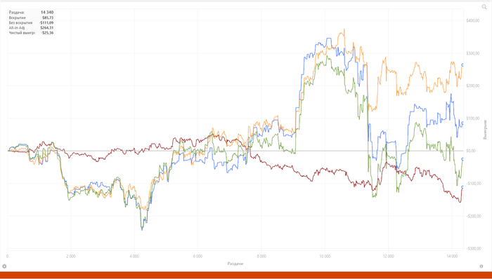 14 место было. Это +850, +200 рб, а в итоге в кассе вышло около -100. Т.е. залил около 1150.