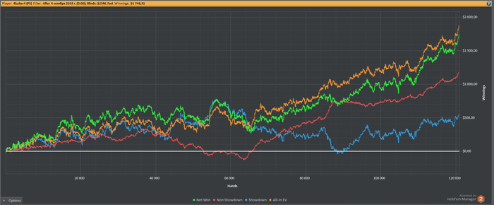 Теперь я практически уверен, что бью nl25. А о том, что 120к рук может быть выбросом дисперсии, я предпочитаю не думать.