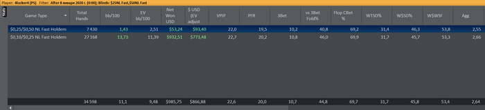 искусно выстроенной против меня игры жести я давно не встречал. Мне сдавали всю грязь, которую я когда-либо видел, но при этом они решили добавить это именно в 3/4бет потах. Я был сказочно рад тому, что мой БР падает с Эвереста с ускорением свободного падения. Но в последний момент я всё-таки раскрыл парашют (взял себя в руки) и спустился на нл25. И до сегодняшнего дня продолжаю играть именно этот лимит. К счастью, на нём я быстро реабилитируюсь и уже совсем скоро - через месяц - буду снова пытаться побить низкие лимиты.