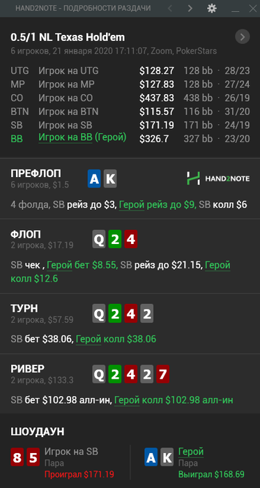 Планировал сыграть сегодня еще 4-5к рук, но у меня просто дичайшее похмелье. Ничего не помогает. Вчера специально не поехал гулять со своими покерными друзьями, под предлогом того, что денег и так не оч много + все нормальные пацаны без банкролла должны сидеть и катать субботним вечером. Ну а потом уже другой мой товарищ где-то раздобыл 3 коробки элвис джуса и решил, что меня обязательно нужно им угостить, причем чем скорее, тем лучше. Поэтому покер накрылся пиздой)