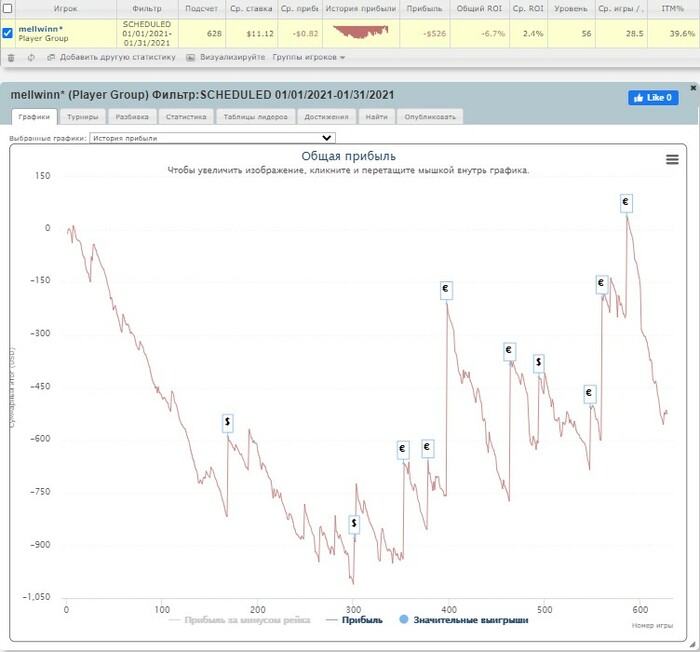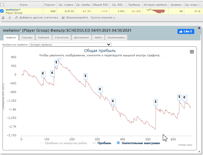 Итак, сыграл за месяц почти 670 турниров, АБИ составил 20$, Общий рой минус 11%, профит минус 1600$.