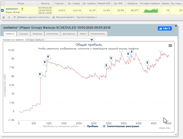 Профит с начала марафона составил: 8000$.Рой: 85%.АБИ: 6,4$. количество турниров - 1300