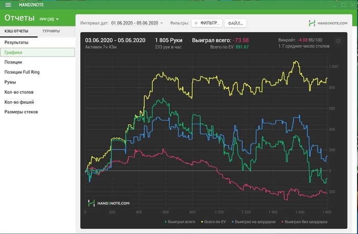 Совершаю кучу гавно-действий, пушу без эквити, упускаю кучу возможностей продавить по красной и .т.д Самое хреновое что именно в такие моменты я катаю больше всего, а не когда я на пике концентрации и могу принимать взвешенные решения.. По итогу 80% дистанции проходит в С-гейме и по итогу я имею 8бб на полтосе рег-столов, где такое чувство что обезьянка тыкая рандомные кнопки набьет больше.