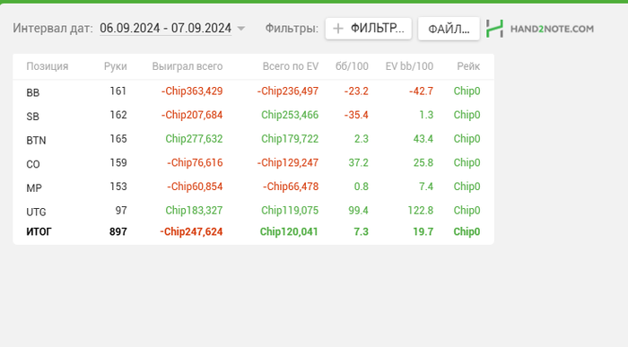 Сегодня сделал топ 1. Долгое время был топ 2,потом за финальным столом долгое время был чипаком. Совершил 1 ошибку в лимп с сб 4 стека пушнул А3оф на 16 бб и потерял лидерство. Потом опять нарастил и проиграл по выставившись терном с ТП второй паре. Все же удалось сделать первое,что конечно радует не только финансовой составляющей, но и завершенностью процесса.