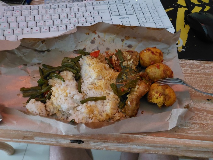 Питаюсь в местных варунгах, где продают национальные блюда. Их тут куча повсюду. Можно заказывать на доставку или ходить в какие-то кафе и т.д. Жильё + электричество + еда 3 раза в день обходится около $600.