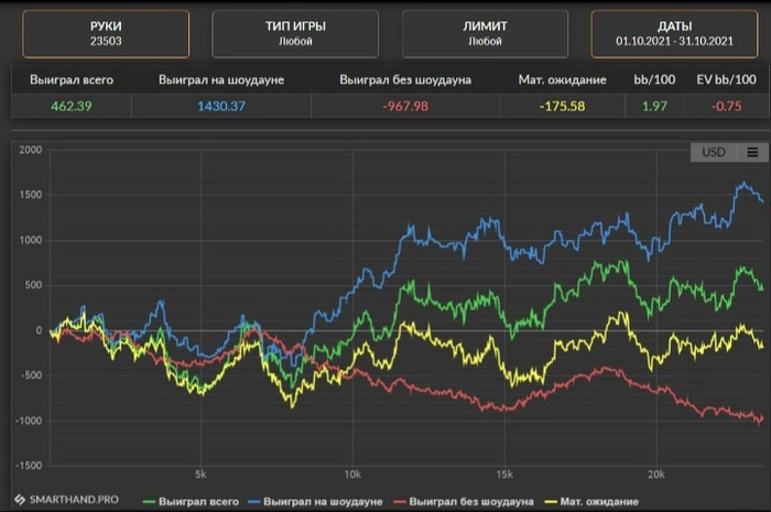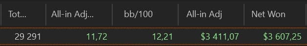 Учитывая селект да и уровень игры подавляющего большинства регулярных оппонентов - такое ожидание никуда не годится и говорит о том, что проблемы вообще везде - поэтому надо много работать над стратегией, чем и занимаюсь. Ну а сбОльшим ожиданием и периодов в ноль/минус будет меньше.