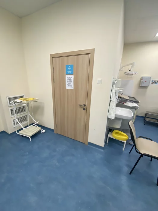 Палата большая, в ней все и происходит. Внутри помимо аппаратуры, также есть ванна (кому-то легче в воде переносить) кто-то на фитболе успокаивается + душ/туалет. Таких палат по этажу много, все +-одинаковые.