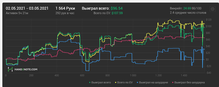 Ну а если серьёзно товарищ достаточно агрессивный, широко 3бетит, на монотонной структуре считаю большая часть велью будет чекать. Выглядит как попытка дёшево украсть банк. Терн выходит его карта, в которую можно продолжать блефы. Ривер бланк по сути.