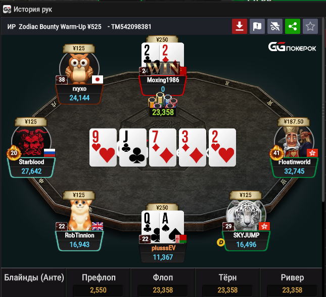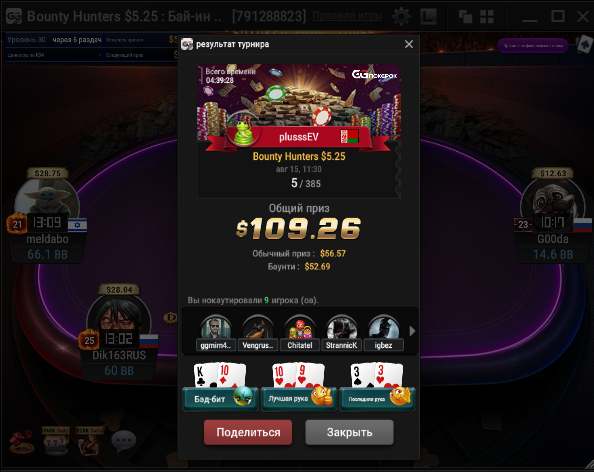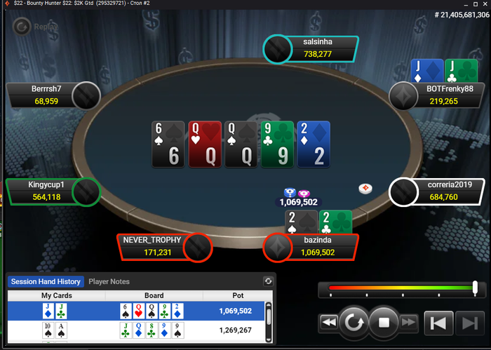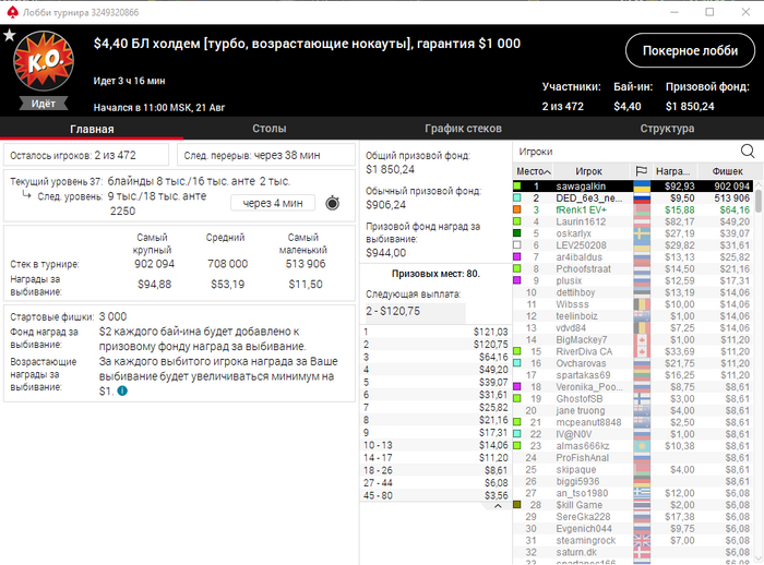 Ну и это наверно самый обидный , в котором я получил очень плохой кол от рега бразильца за чип стек , выиграв эту раздачу я бы уже победу не отдал , но ни чего значит занесу турнир по интереснее