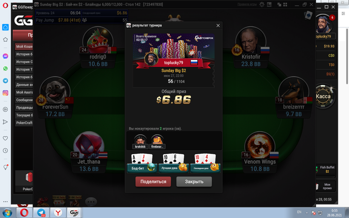 Приветствую всех у себя в блоге спс что заходите и смотрите ,вы моя поддержка!..)прошёл в турнире за 1$ в призы..заработал 6,21$