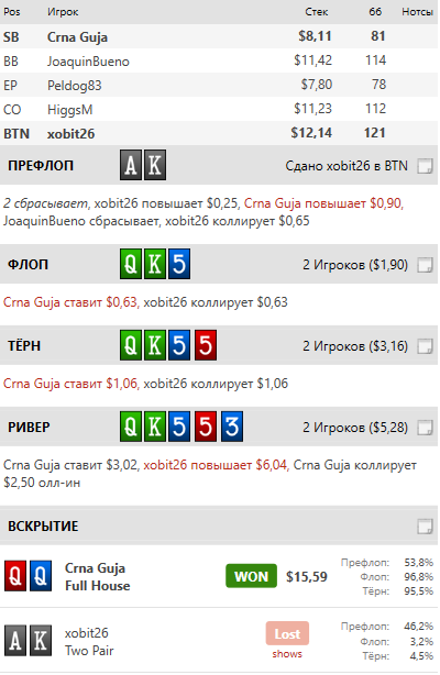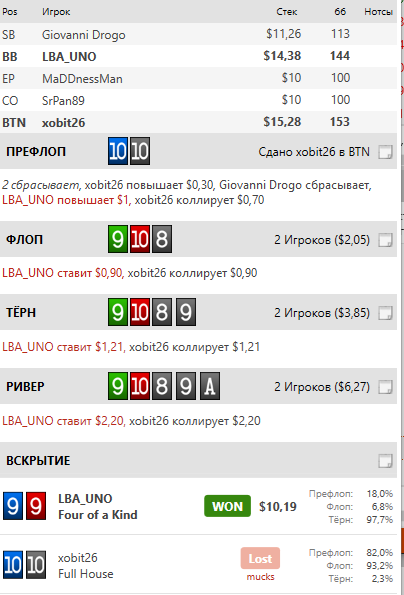Вторая - против " Нашего братика" Ривер колл полюбому, но вот стоило ли 25бб с него добирать ? Думаю да , так как он по любому совпадению будет вскрывать .