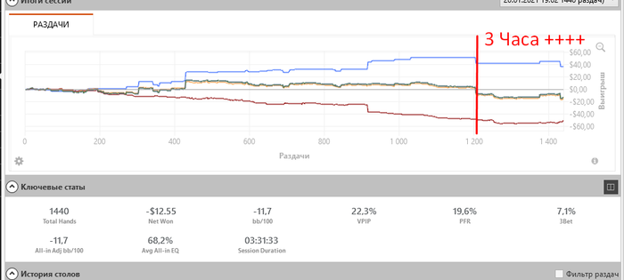 Вчера наступил на собственные грабли.... Как только начинаю отыгрывать 3 часа+ , так начинается психологическая привычка творить дичь Есть пару раздач . Первая - против нулевого игрока - телефона , которая вывела сессию в минус