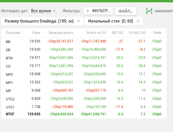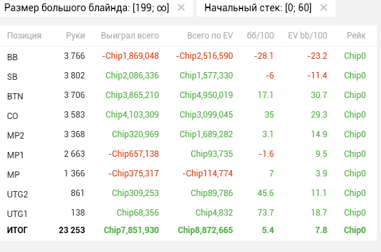 А покажешь винрейт чисто с GG ? Сверху я так понимаю у тебя база со всех румов. Просто хочу со своими сравнить. Я когда на старзах гриндел - печатал чуть ли не под 20/100, перешел на GG, еле ели 11 выжимаю на аби7. Можно в личку, если в блоге не хочешь.
