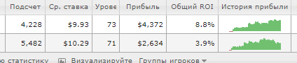 Добрый,Привет! Что-то в районе 9-10 сейчас, впадлу скачивать.Когда 9 столов катал там вообще 7-9 показывал, худший рум у меня и по вр и по резам(