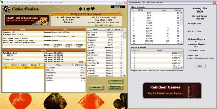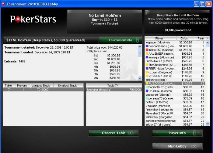 Турнир длился 15 часов. Когда остались в пятером играли около 1,5 часов. Потом всем это надоело и поделили. Мне досталось 1892. Отличный турнир только уж очень долго идет.