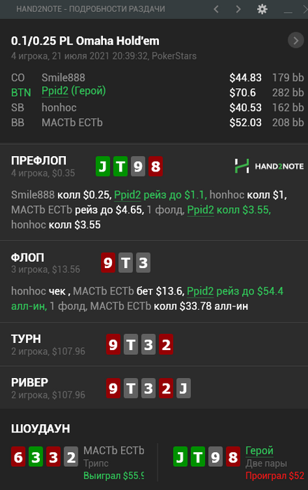 Aalternative, да префлоп это ж по настроению. А играть какой-то узкий спектр, а постфлоп кататься лицом по клаве, вот здесь точно много ума не надо. Тем более по статам, оппонент просто максимальный бомж