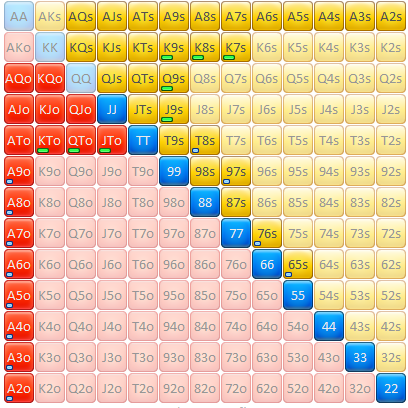 Прикинул сейчас диапазоны префлопа.