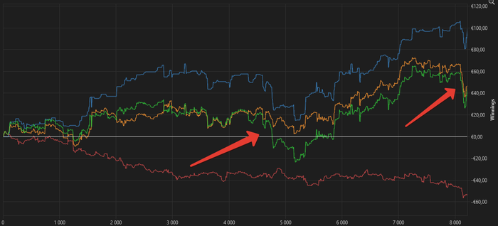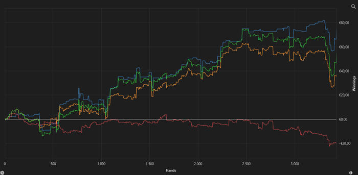Отыграл 3000 рук, результат около нуля. По ЕВ минус, по Нэт Вон плюс.