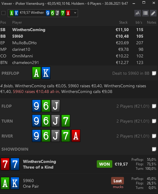 4 часа игры, чтобы получить две такие последние раздачи. СБ vs ББ