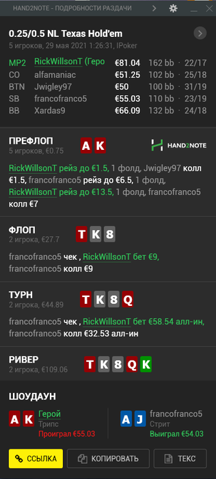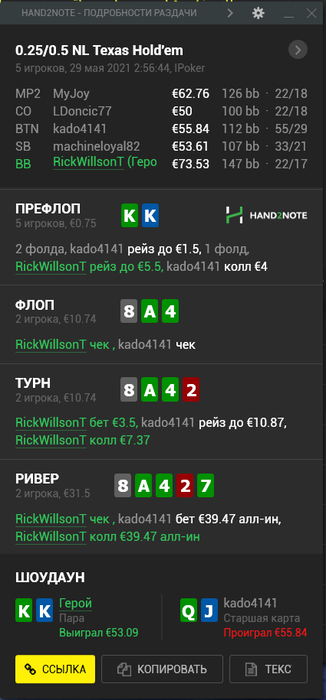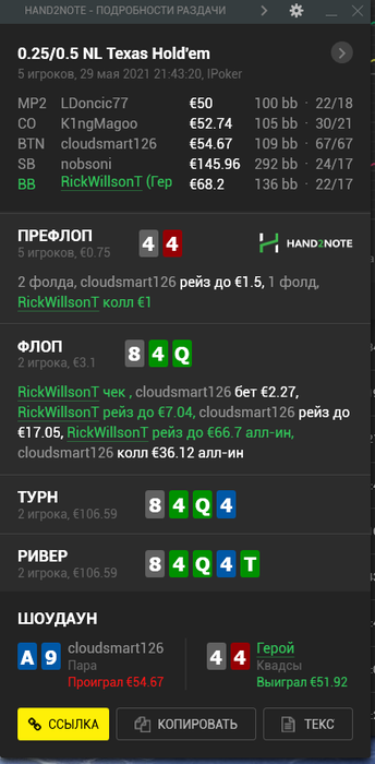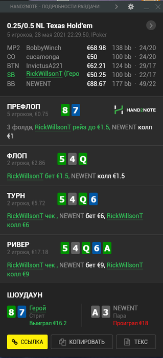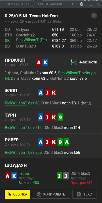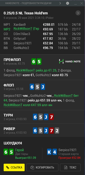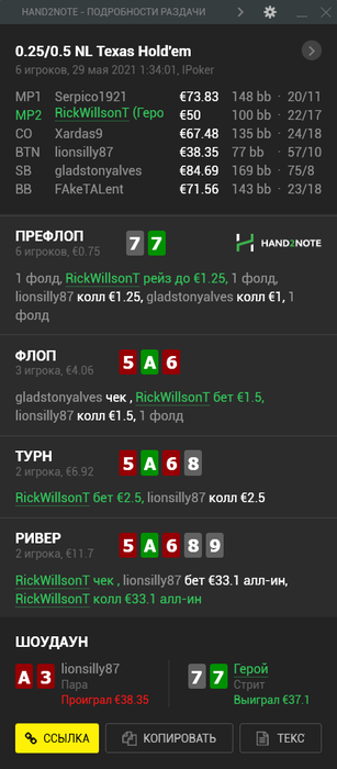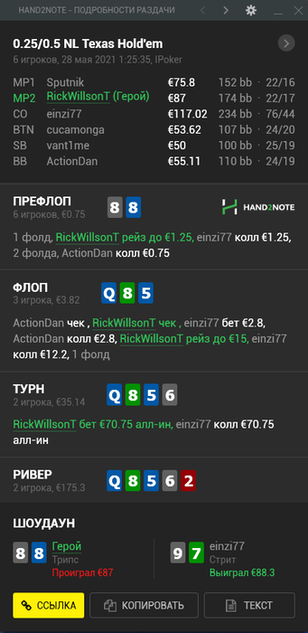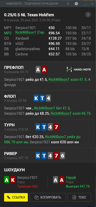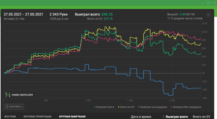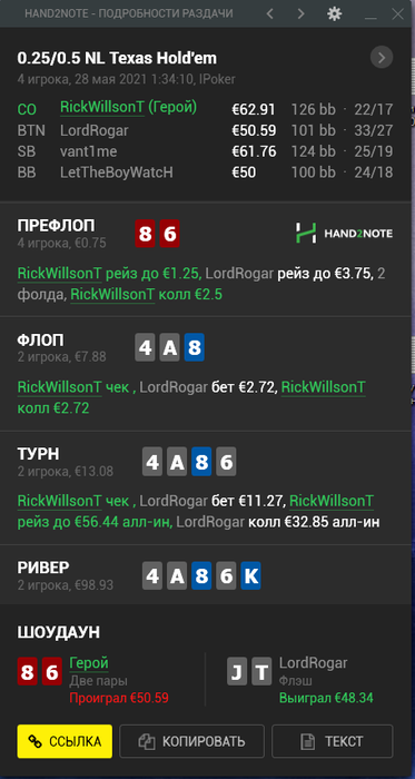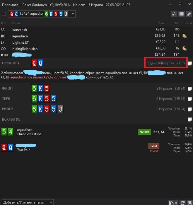 А дальше префлоп говно пораздавали пару раз не в мою сторону...