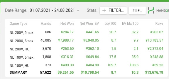 По ощущениям "вкатился" в покер, появляется какое-то адекватное понимание, что за столами творится и как на этом винрейт делается)